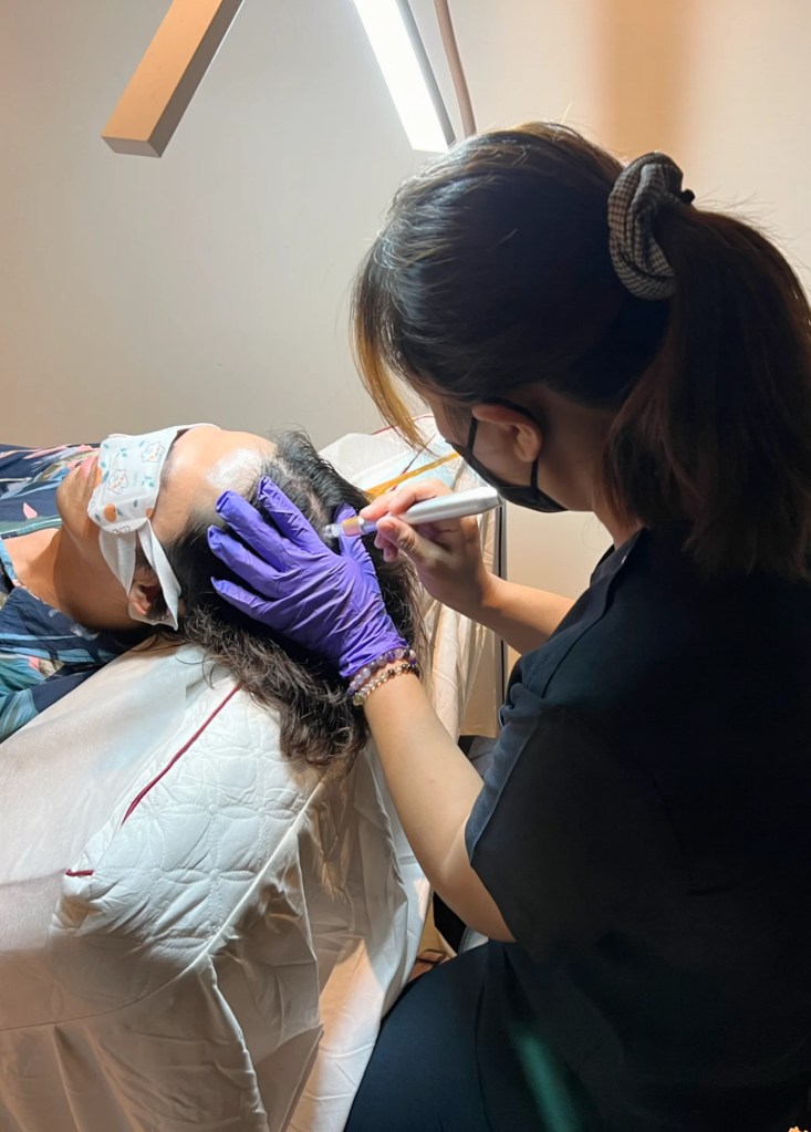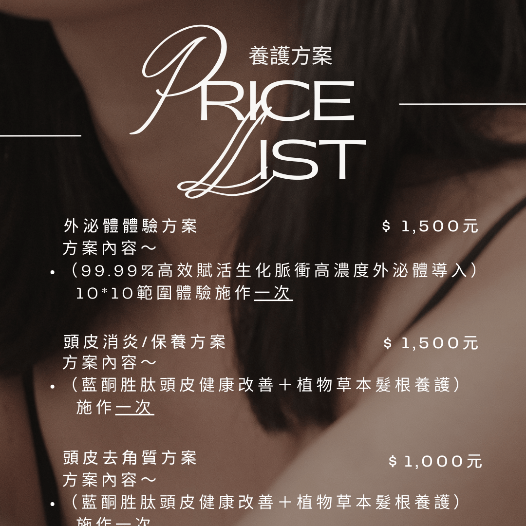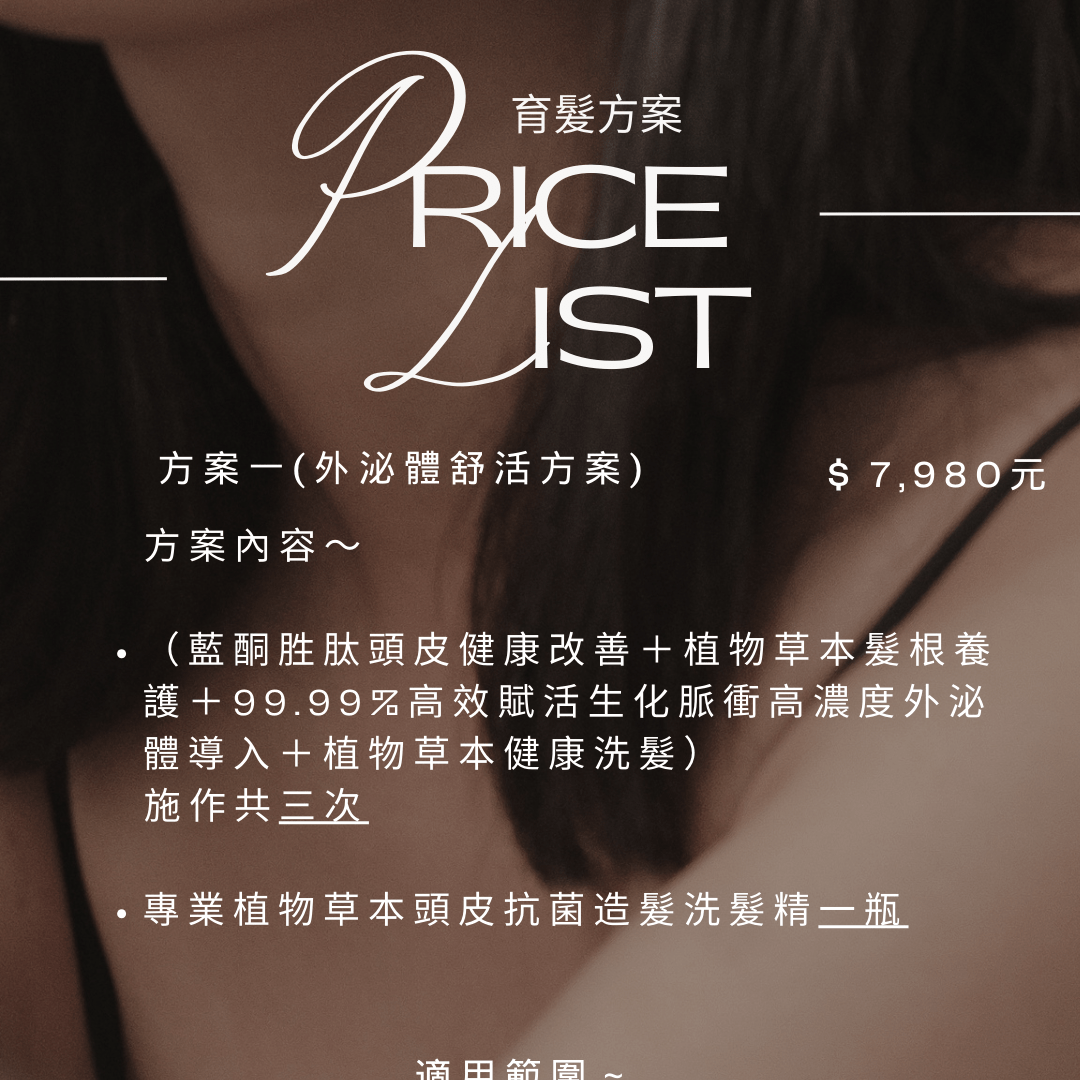 使用源自SPF無毒雞胚胎的動物性外泌體,純度最高、分子穩定、安全性佳,並依據每位顧客的頭皮狀況與落髮型態,提供客製化的療程規劃,從診斷到保養全程追蹤。